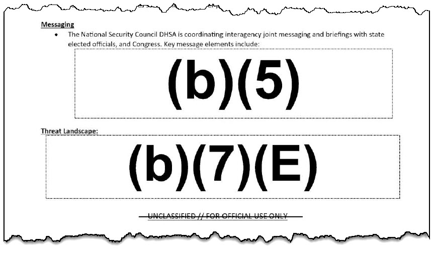 In addition to the surveillance equipment being withheld, sections under the “Threat Landscape” heading and other operational details were heavily redacted, suggesting that DHS may have identified sensitive vulnerabilities or investigative leads that remain protected.
