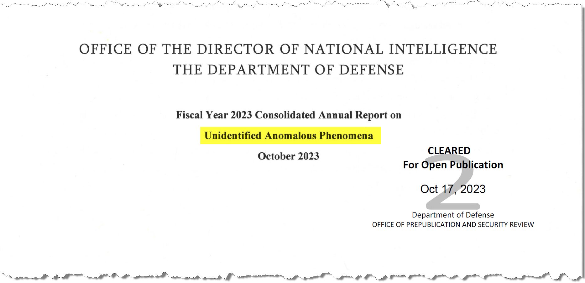 Fiscal Year 2023 Consolidated Annual Report on Unidentified Anomalous Phenomena October 2023 [16 Pages, 1.5MB]