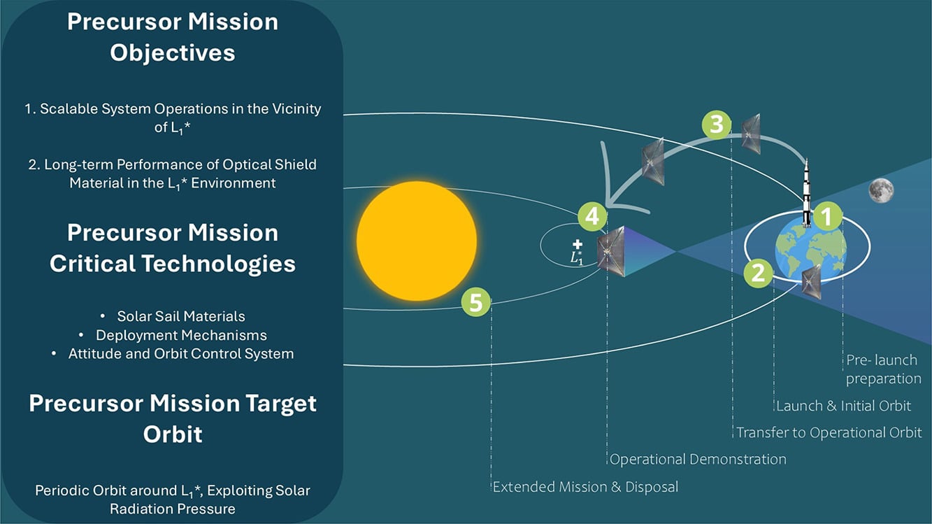 Second, the mission will demonstrate solar sailing as a viable propulsion method. Just as wind powers sailing ships on Earth’s oceans, photons from the Sun can provide thrust to spacecraft. This sustainable propulsion technique would be essential for maintaining the position and orientation of a full scale sunshade without depleting fuel reserves.