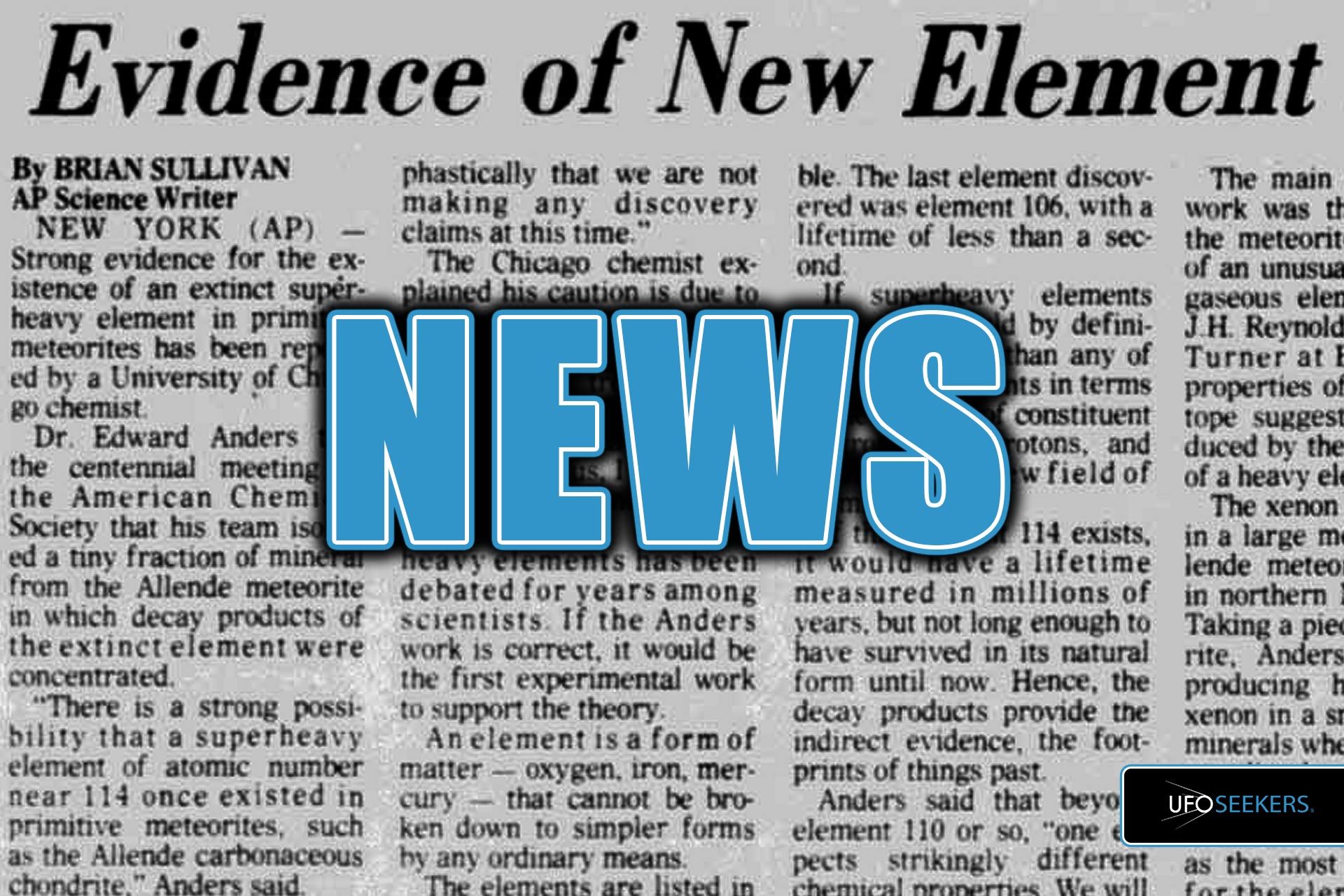 “There is a strong possibility that a superheavy element of atomic number near 114 once existed in primitive meteorites, such as the Allende carbonaceous chondrite,” Anders said.