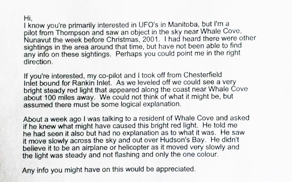who had seen a UFO in Nunavut just before Christmas 2001: