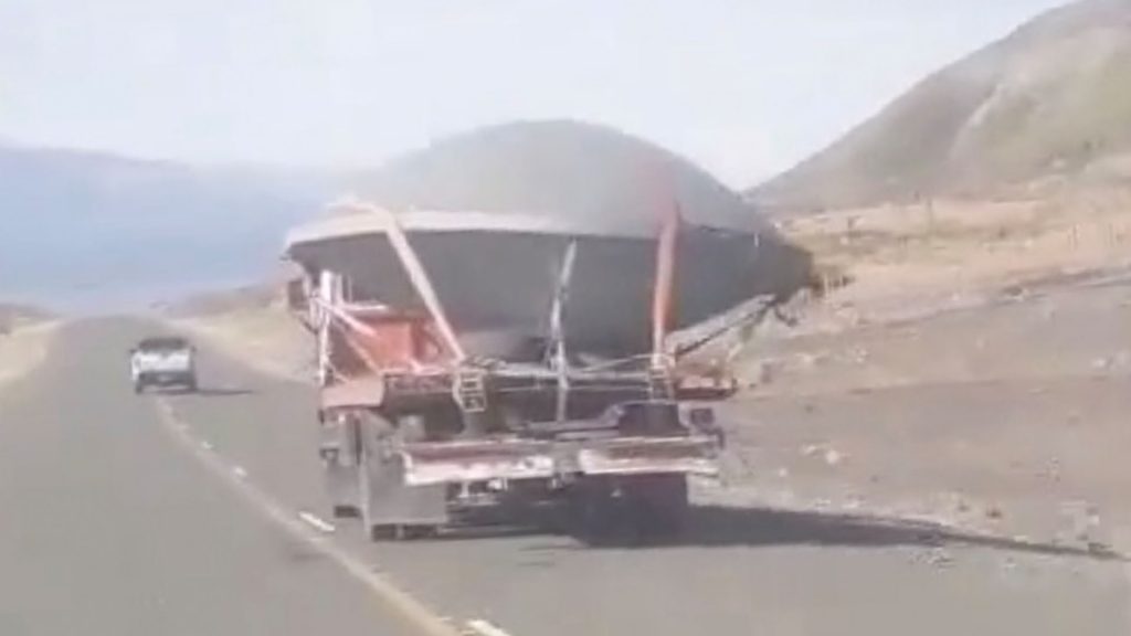 Photos have emerged of the UFO-like object being transported on a truck in Argentina.