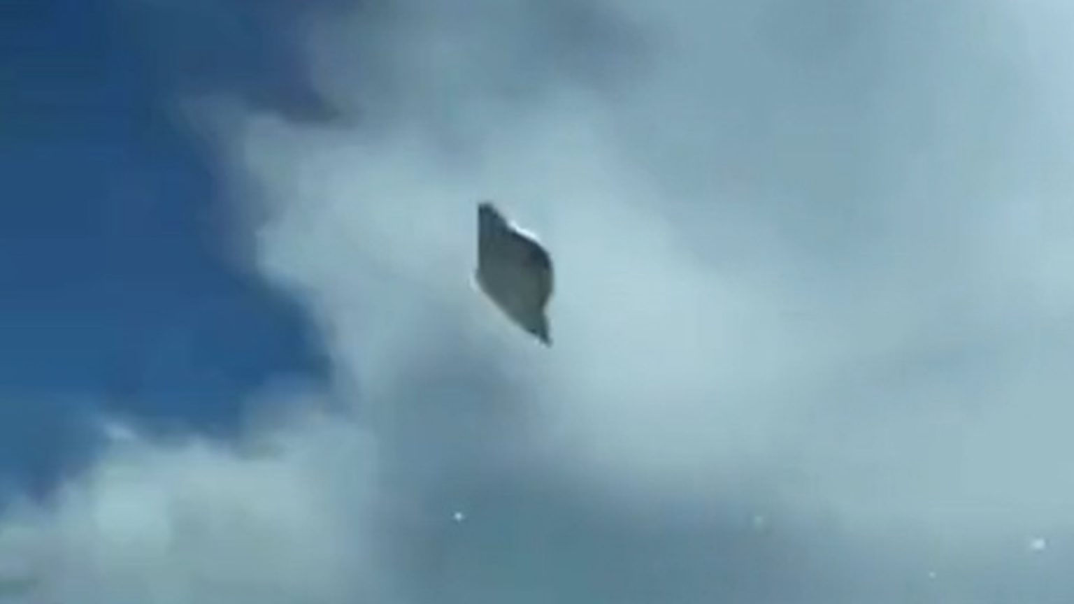 CHILLING UFO footage has captured a flying saucer soaring through the sky, passing the cockpit of a plane and leaving viewers stunned.