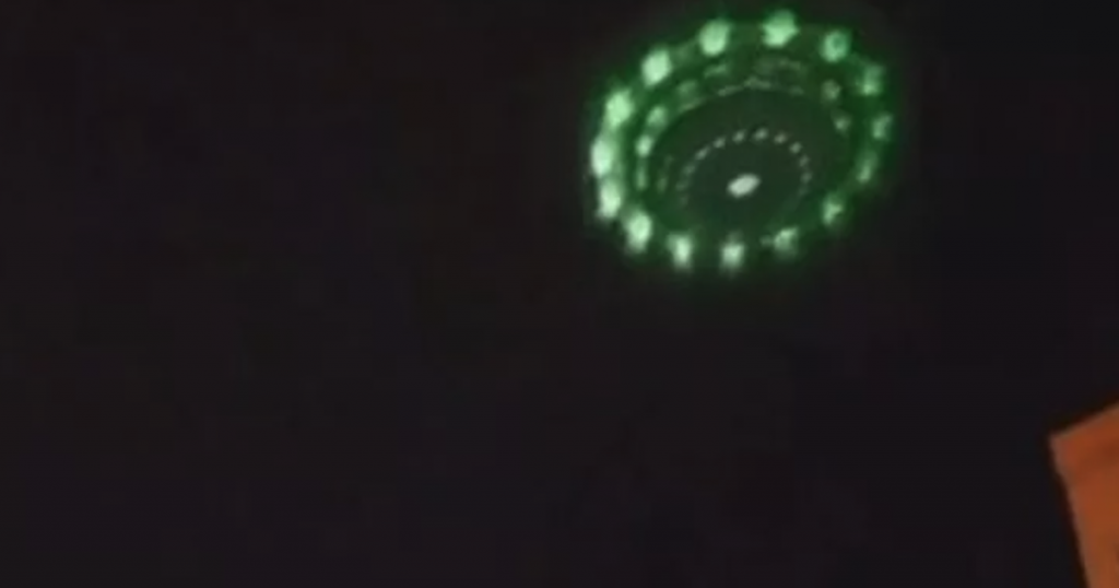 The circular object, which appears to be made up of three rings of around 20 lights, was seen flying through the air at the end of May. The clip, posted on social media, sees locals staring at the object hovering no more than around five metres above their heads