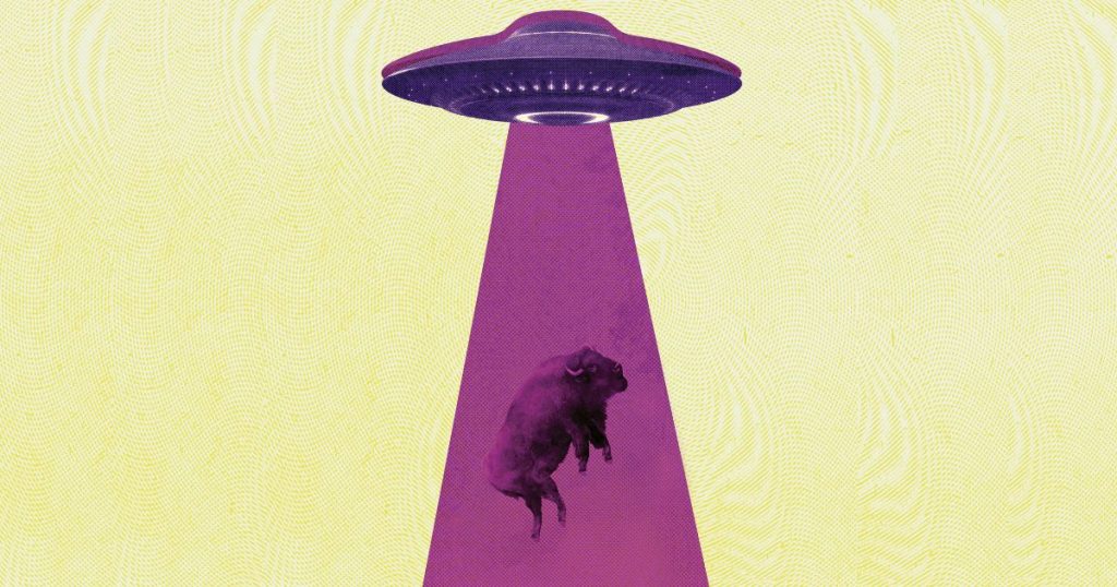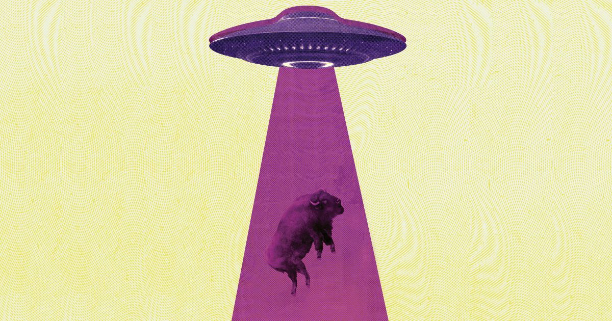 “So, that’s the reason for my interest. Every couple of years, I would make a little trip to Cavalier for a couple of days. I was there, staying at a little motel, and decided I wanted to go out for a walk in the neighborhood. I’m walking along and all of a sudden, I’m thinking, ‘What is that?’ And I couldn’t quite tell, it looked like a warehouse that was above the ground—so it got my attention. As I was walking, I was able to get a little bit clearer view because I was right at the edge of town, and there were homes there. I got to the spot where there was kind of an empty lot and I had a better view. So I’m standing there, looking at this thing, and my brain is trying to figure out what it is I’m looking at, because it looks to me to be white but it was being illuminated by the setting sun. And it was huge. It was about the size of a big warehouse or like a football field or something. It was really hard to determine how close it was to me because it was so big. My brain was trying to find a reasonable explanation for what I’m seeing. I’m standing there in the street and I noticed, ‘Oh, no, the Oz Effect.’ I don’t hear anything, I don’t hear crickets. I don’t hear dogs barking off in the distance. What I can hear is a swing, going back and forth, squeaking. There was a little girl in the backyard, swinging on a swing set. I looked at her, she looked at me and she got off the swing. In my mind, she’s probably wondering, ‘I don’t know this person. Why is she staring up there?’ So, she starts looking at it, and then she starts yelling to her mom, ‘Mom, what is that? What is that?’ Her mom comes out and she takes her by the hand and runs her into the house. I’m still standing there, looking at that and thinking, ‘What’s going on?’ And it drives me crazy, but did I take a picture of it? No. Did I even think to take a picture of it? No. And even stranger, I started feeling bored. Like, I was losing interest in what I was seeing. It was moving very slowly. So, after maybe 10 or 15 minutes of standing in the middle of the street, I start moving. And I started walking, I’m thinking, ‘Okay, that’s interesting.’ I’m watching it, I keep looking up between homes where I can see it, and it’s gradually getting farther and farther away. I notice that the only sound I can hear is just my feet on the pavement and my breathing. I’m looking around for other people and I don’t see anybody or anything. There’s nothing moving. I’m weirded out by that and think, ‘It’s time to go back to reality here.’ So, I stopped again, and I watched it for a couple more minutes, and it was really getting far away by that point, I thought it must be over Canada by then because it was going in that direction and it appeared to be in Canadian airspace.”
