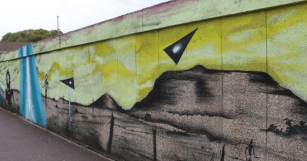 A mural painted to celebrate the 50th anniversary of the Warminster Thing