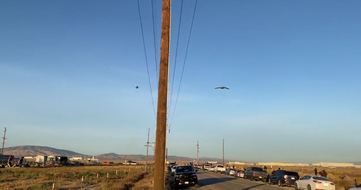 A video posted on X shows the B-21 — which resembles the sleek UFOs from classic science fiction — flying over California‘s blue skies.