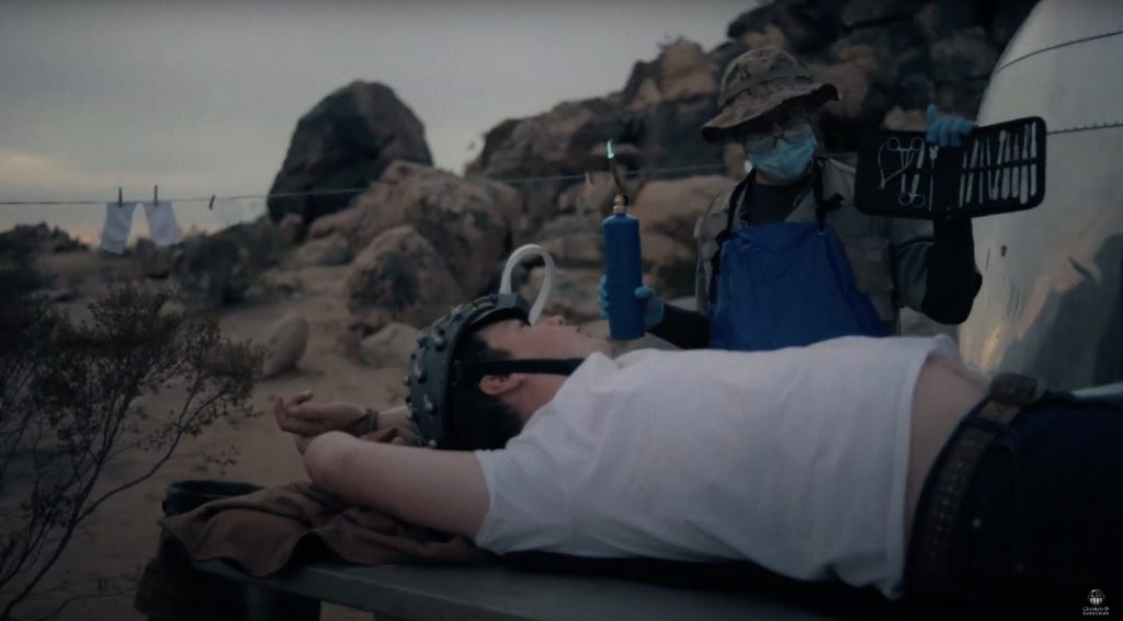 This wacky-looking movie comes from filmmaker Zach Green, from a script he co-wrote with Devin O’Rourke. The movie stars Chris Doubek as Tom, Brian McGuire, Devin O’Rourke, Zach Green, Ari Stidham, Ashley Rae Spillers, and Jasmine Wattar.