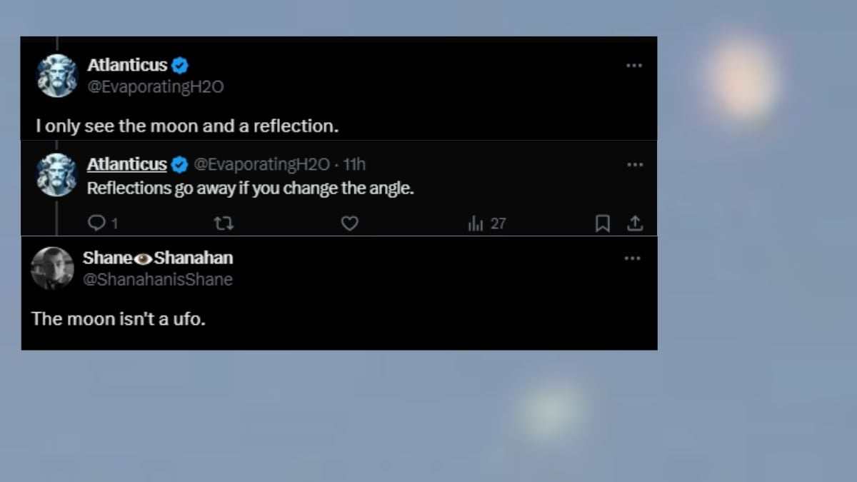 “I only see the moon and a reflection. Reflections go away if you change the angle,” read a reply to the video. “The moon isn’t a ufo,” added another while quashing the claims of it being an UFO. But some still stuck to their idea of it being something out of the universe. “This location is known for it (sighting UFOs),” an X user noted sooner.
