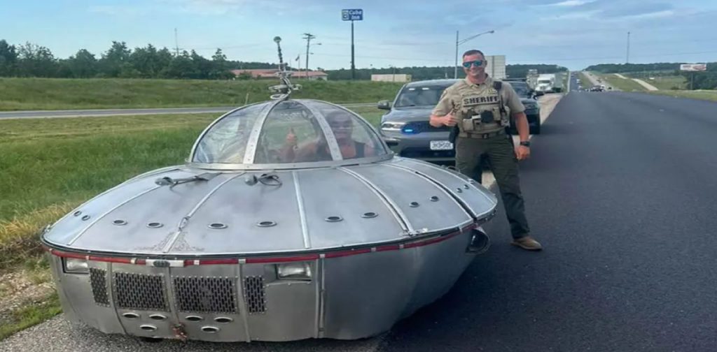 As reported by The Epoch Times, a man driving a vehicle looking like a UFO was pulled over by a sheriffś deputy for driving erratically.